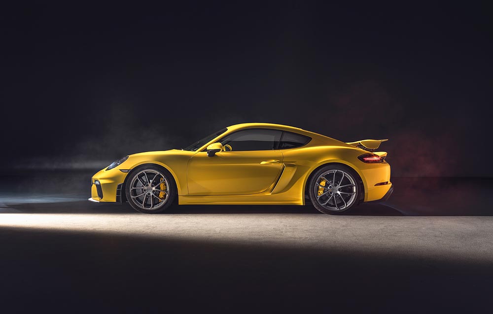 Po raz pierwszy w historii 718 Spyder i 718 Cayman GT4 korzystają z tej samej bazy technicznej, w tym z nowo opracowanego 6-cylindrowego motoru o pojemności 4 litrów, połączonego z 6-biegową manualną przekładnią. Wolnossący bokser w obu modelach osiąga moc 309 kW (420 KM). GT4 reprezentuje podstawowy drogowy model GT firmy Porsche, natomiast Spyder powstał z myślą o krętych odcinkach dróg. Obie maszyny wyróżniają się wysoce efektywną aerodynamiką, kompletnym podwoziem GT i wydajnymi hamulcami.