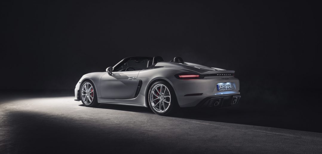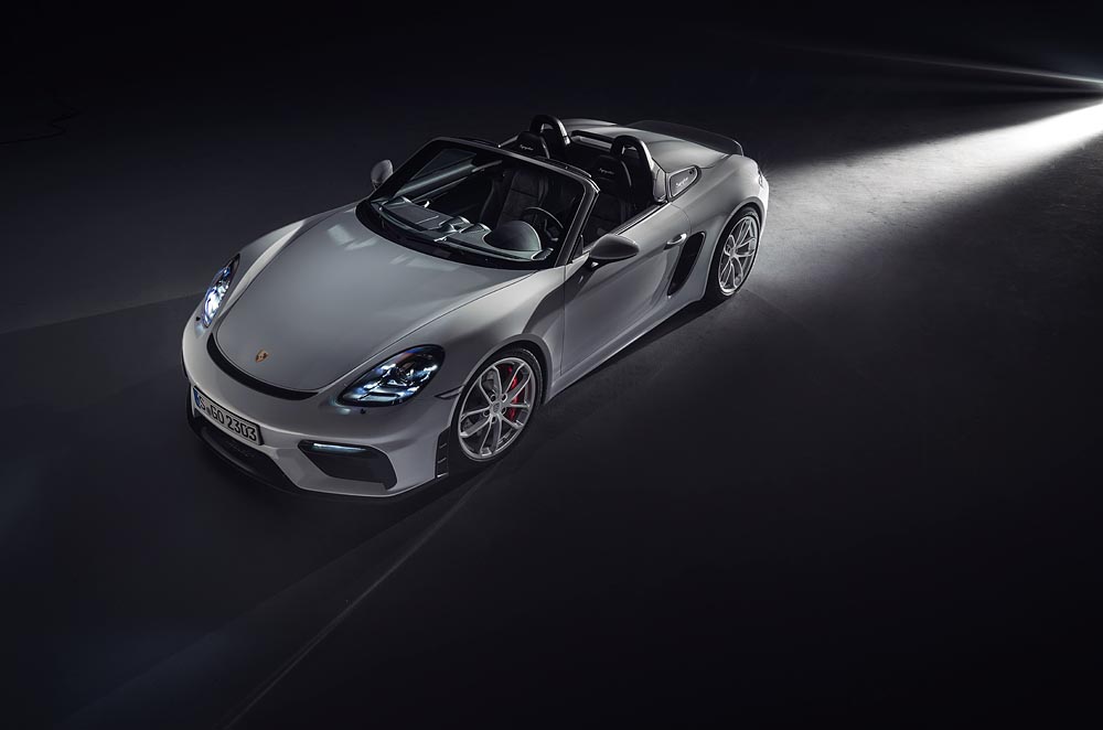 Nowe 718 Spyder to purystyczna maszyna stworzona dla przyjemności z jazdy – między innymi dzięki lekkiemu poszyciu dachowemu, które radzi sobie nawet z najwyższymi prędkościami. Model kontynuuje historię słynnych Roadsterów, takich jak Porsche 550 Spyder oraz 718 RS 60 Spyder. Bez względu na to, czy z otwartym, czy z zamkniętym dachem – porywa swoją zniewalającą sylwetką. Poszycie dachowe nadaje się do codziennego użytku i można schować je pod pokrywą bagażnika – wystarczy zaledwie kilka ruchów. W przeciwieństwie do modelu Cayman GT4, 718 Spyder ma tylny spojler, który podnosi się automatycznie przy 120 km/h. Funkcjonalny dyfuzor sprawia, że jest to pierwszy model z rodziny Boxster, który wytwarza aerodynamiczny docisk na tylnej osi.
