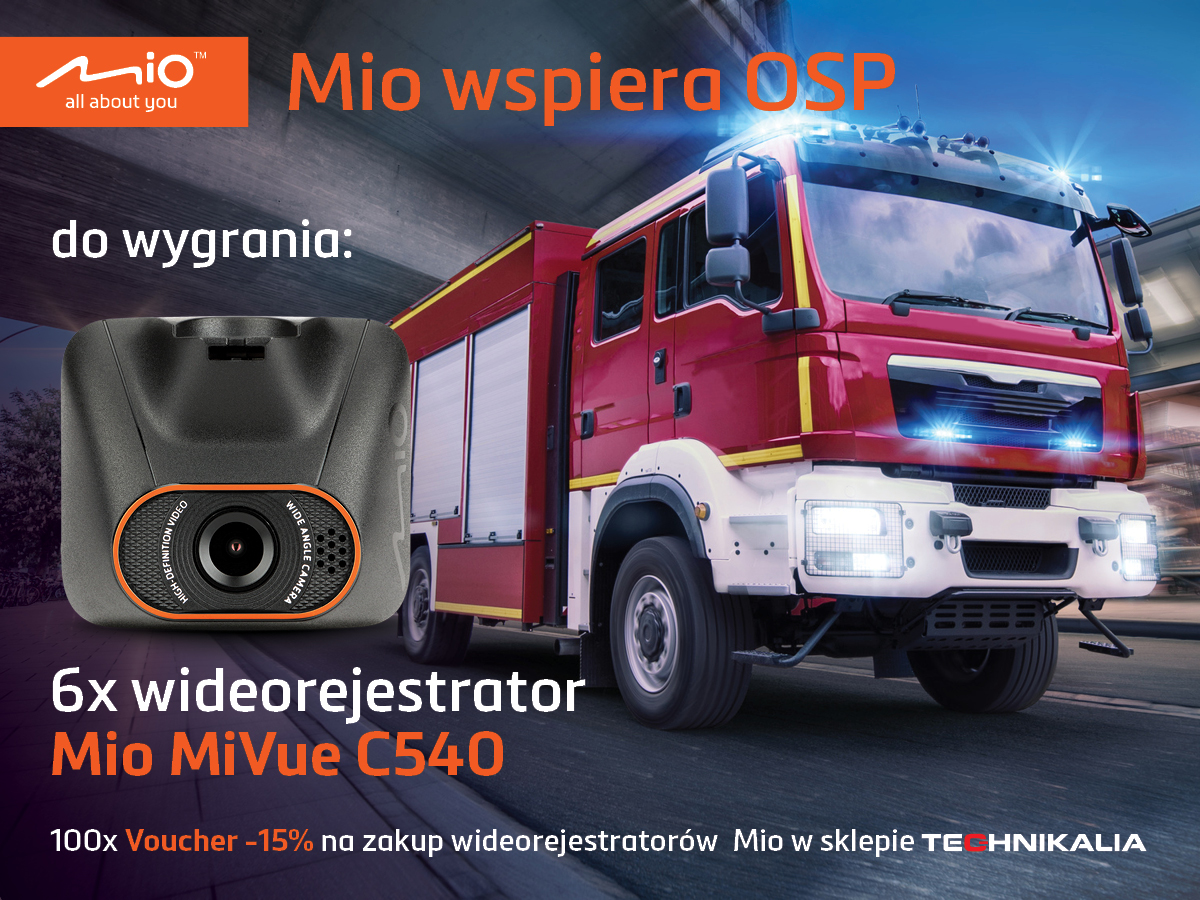 Celem akcji jest wsparcie strażaków w ich codziennych, poważnych zadaniach. Dzięki nagraniom z wideorejestratora Mio strażacy będą mogli przeanalizować poszczególne etapy każdej akcji oraz mieć twarde dowody w przypadku spornych interwencji. Konkurs potrwa 6 miesięcy, podczas których marka przekaże 6 wideorejestratorów jako doposażenie wozów strażackich. Wystarczy przesłać zdjęcie/film/kolaż strażaków pracujących w jednostce na tle związanym tematycznie z Ochotniczą Strażą Pożarną (np. samochód, budynek OSP), na e-mail mio@technikalia.pl, aby wziąć udział w konkursie. Komisja co miesiąc wyłoni zwycięskie zdjęcie lub film. Ta jednostka otrzyma od Mio wideorejestrator C540. Ponadto strażacy mogą skorzystać z puli 100 voucherów z rabatem na zakup wszystkich modeli wideorejestatorów Mio w wysokości 15% do wykorzystania w sklepie www.technikalia.pl. Voucher może otrzymać każda jednostka lub strażak po przesłaniu skanu ważnej legitymacji strażackiej na mio@technikalia.pl