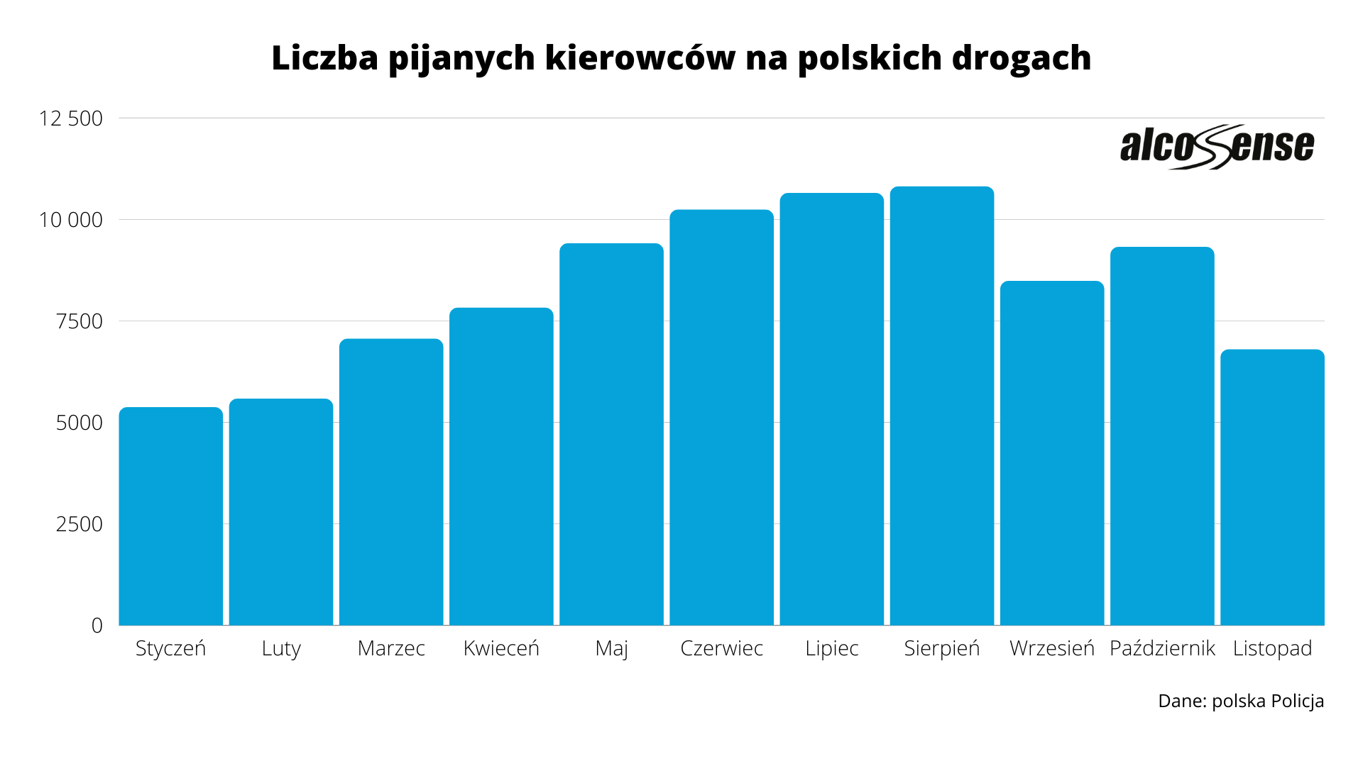 – Wzrost liczby pijanych kierowców względem zeszłego roku jest bardzo alarmujący. Zwłaszcza, że mowa o sezonie jesiennym, w którym zwykle notowano ich mniej niż w cieplejszych porach roku. W październiku za kierownicę pod wpływem alkoholu wsiadło tyle osób, ile zwykle notuje się w maju – ciepłym miesiącu z długim weekendem, który zachęca do wyjazdów za miasto i grillowania z rodziną czy przyjaciółmi. Ze statystyk wynika, że szczególnie niebezpieczne są poniedziałki. Wielu kierowców rusza w trasę myśląc, że ich organizm już poradził sobie ze skutkami weekendowej imprezy. To tak zwana nieświadoma nietrzeźwość, która stanowi duże zagrożenie zarówno dla kierującego samochodem, jak i innych uczestników ruchu drogowego. Biorąc do ręki kluczyki należy mieć absolutną pewność, że jest się trzeźwym. Dlatego warto zaopatrzyć się w dobrej jakości alkomat osobisty – mówi Hunter Abbott, ekspert ds. bezpieczeństwa ruchu drogowego z firmy AlcoSense.